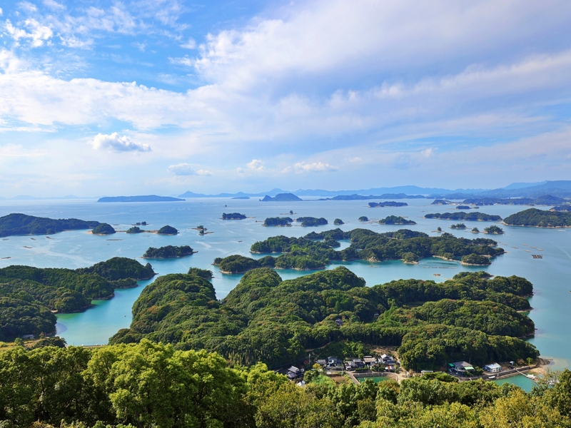 九十九島は長崎県佐世保市から平戸市にかけて広がる、大小208もの島々からなる多島海です。江戸時代中期には「数えきれないほどたくさんの島」という意味で「九十九島」と呼ばれるようになり、景勝地として知られていました。