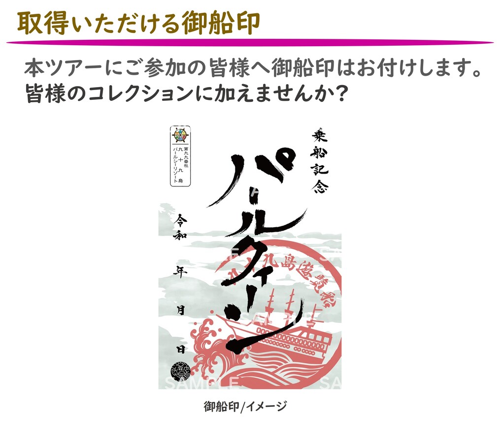 ・ご参加の皆様に九十九島遊覧船の御船印をお付けします(おひとり様各1枚)