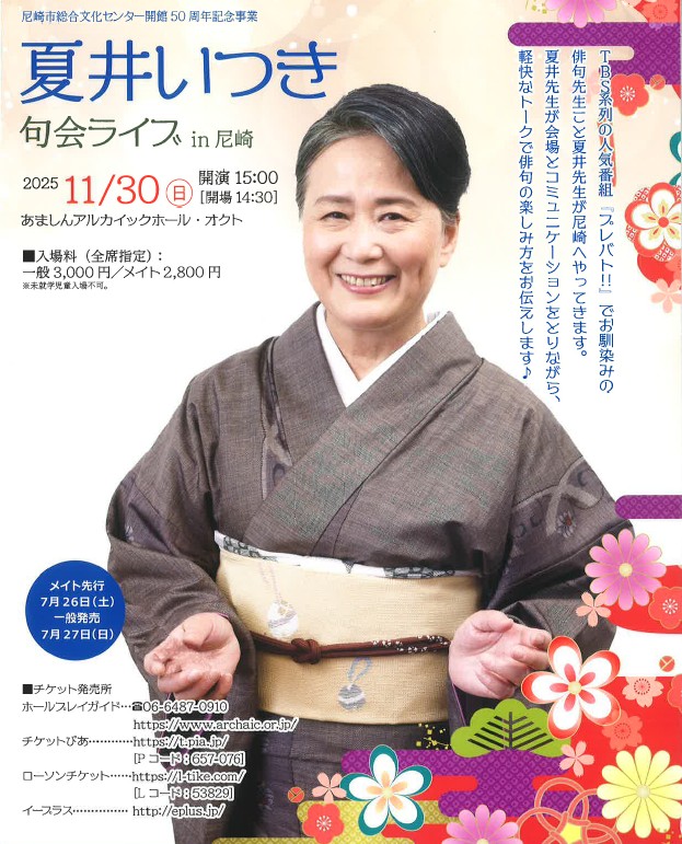 ※メール件名には必ず「夏井いつき句会ライブ in 尼崎」とご記入ください。