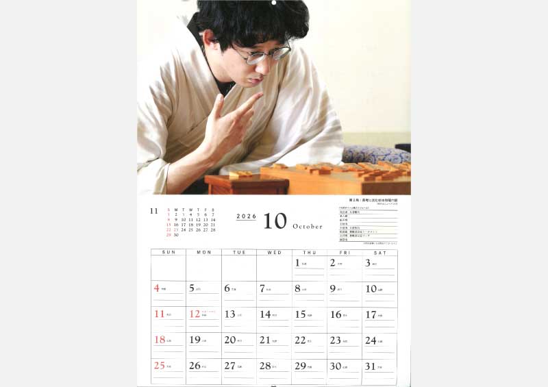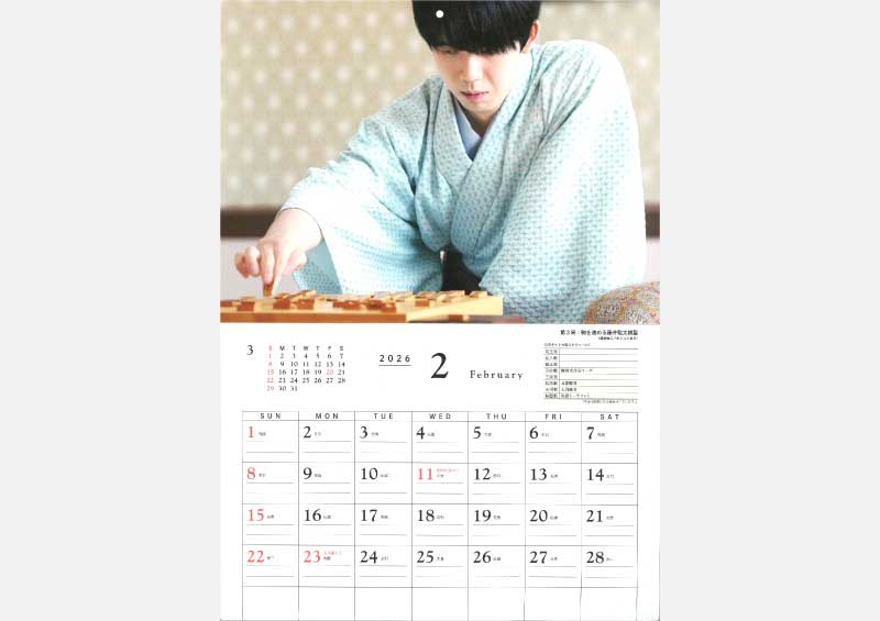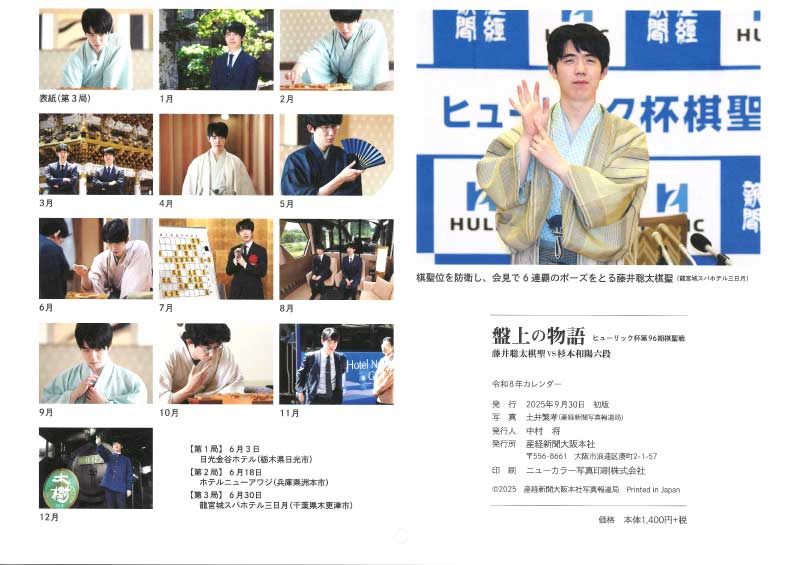 藤井聡太棋聖が6期目となる防衛を果たしたヒューリック杯第96期棋聖戦五番勝負。今年も熱戦が繰り広げられたタイトル戦を題材にした令和8年カレンダーを制作しました。
