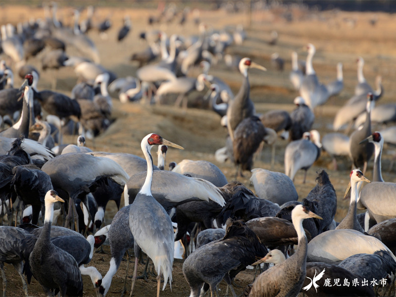鹿児島県出水市は日本一のツルの越冬地とも言われ、「鹿児島県のツルおよびその渡来地」として国の特別天然記念物に指定されています。毎年10月中旬から12月頃にかけてシベリアなどから1万羽を超えるツルが渡来し3月頃まで滞在します。