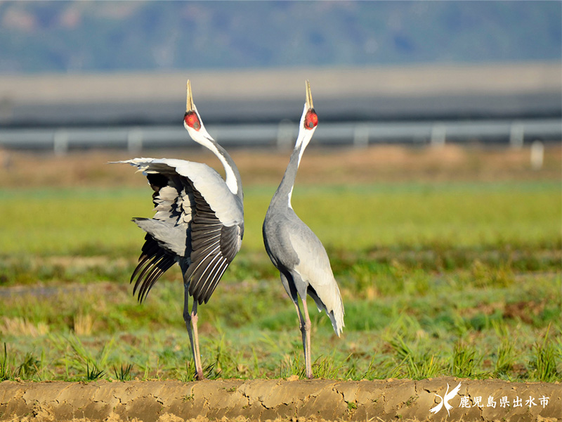 渡来するツルの多くはナベヅルとマナヅルで、クロヅルなど他の種も確認されています。これだけの数のツルが人里近くの干拓地を中心とした田園地帯で越冬するのは世界的にも珍しいとされ、冬の出水の壮大な風物詩となっています。ツル観察センターから朝の一斉の飛び立ちの様子を観察していただく予定です。