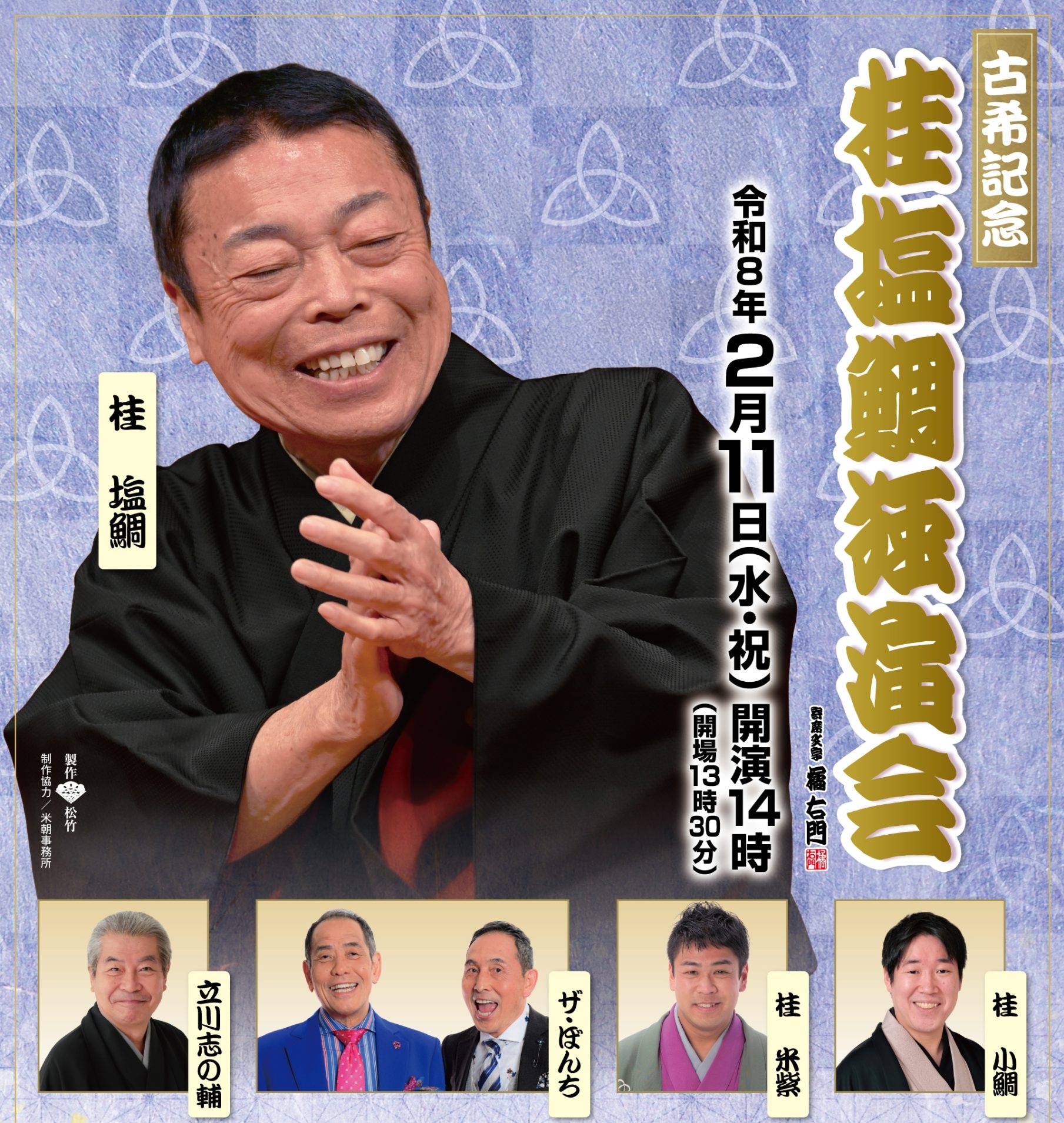 | 公演名 | 桂塩鯛独演会 公演の詳細はこちらのサイトをご覧ください。 |