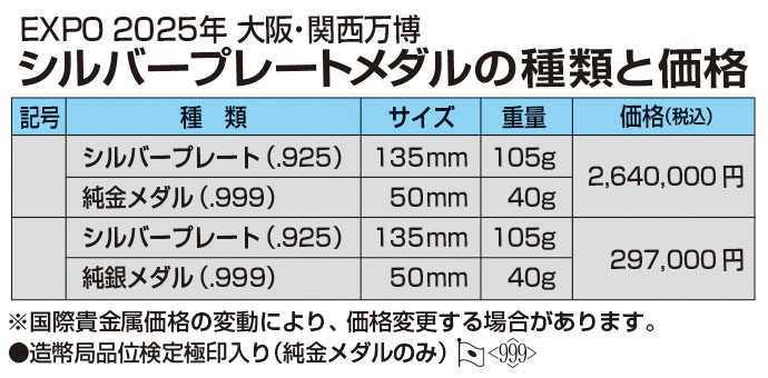 | 商品 | EXPO 2025年 大阪・関西万博シルバープレートメダル