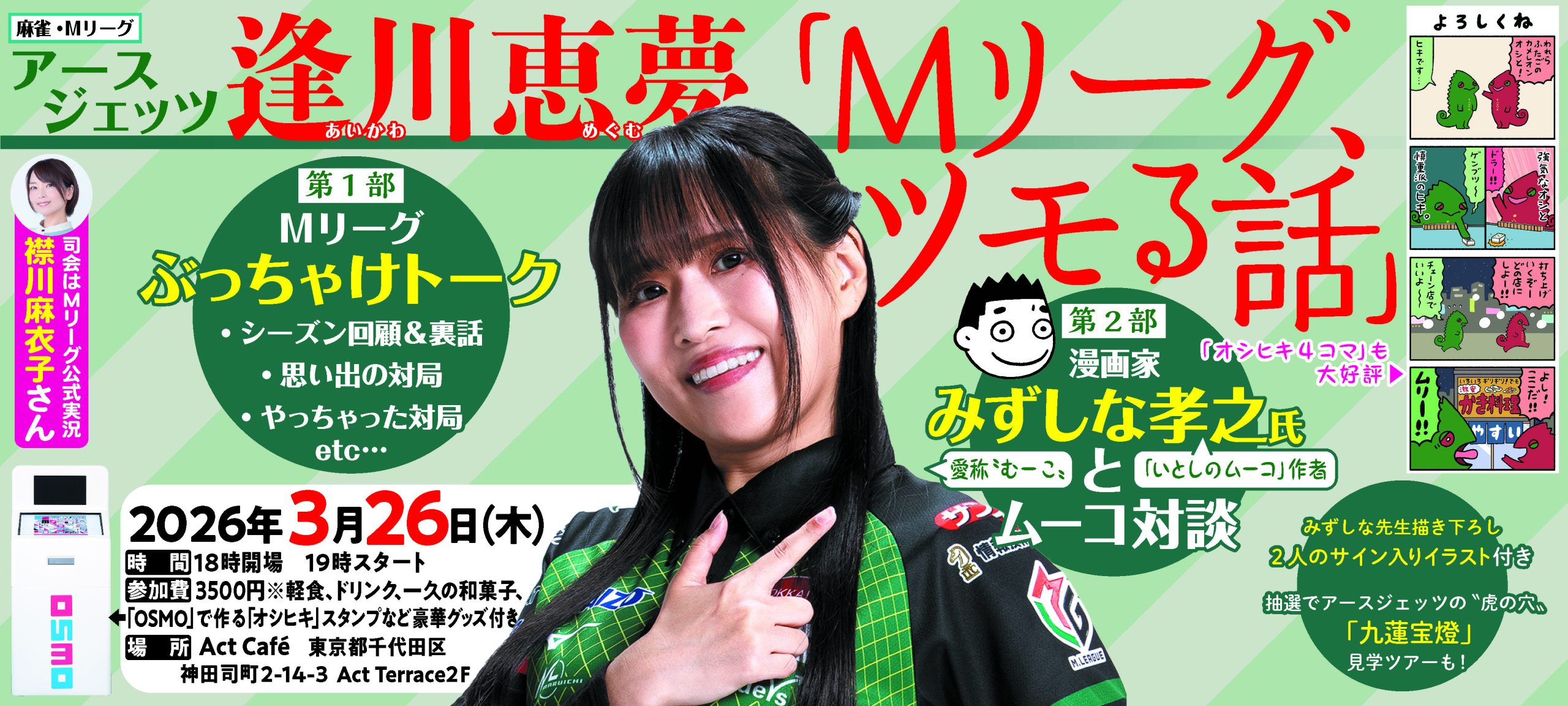 レギュラーシーズン最終戦の2日後に開催される本イベントでは、戦場から帰還したばかりの逢川恵夢選手が、どこよりも早く「ツモる話」を公開します。