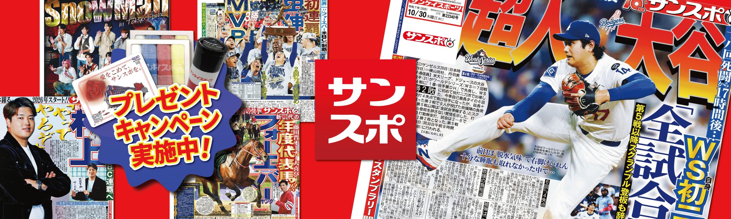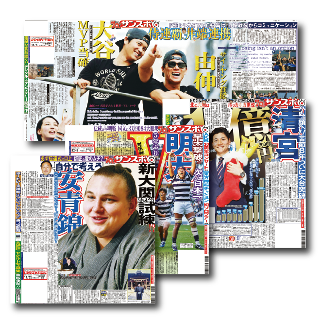 国内スポーツはもちろんのこと、海外で活躍する日本人選手に完全密着。中でもサンスポは大谷翔平選手や山本由伸選手などメジャーリーグへの取材に全力投球し、独自取材では試合で見られない素顔にも迫ります。